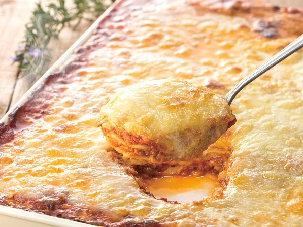 平たいパスタにたっぷりのミートソースとホワイトソースを重ね、店内キッチンで焼き上げました。