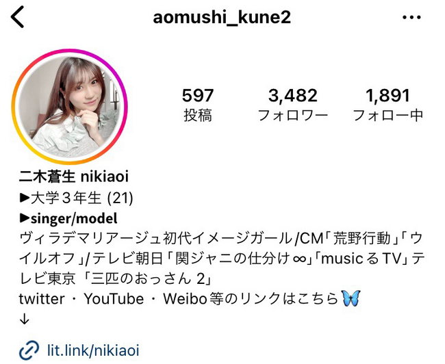 ・二木蒼生(@aomushi_kune2)