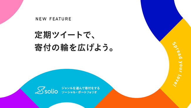 今回リリースされた「定期ツイート」は、solioの名前の由来でもある「ソーシャルポートフォリオ」の共有を促進するものです。この機能が広く使われることで寄付を気軽に伝えあえる社会が実現し、ひいては日本の寄付文化の拡大に貢献できればと思います。