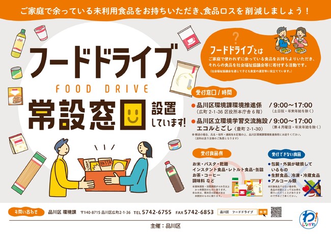 品川区は6月1日より、フードドライブの常設窓口を区内2カ所に設置します。
