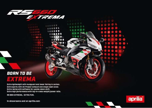 この特別仕様車は、1992 年から 1994 年にかけて製造された、125cc 史上で最も高性能かつ最速モデル の1つである、アプリリア 125 エクストリーマの名を冠し、車体右側へ新たに配置された SC プロジェクト製 の軽量エキゾーストシステムや、高品質なカーボン製フロントマッドガードと新デザインの新型アンダーカウ ルをはじめとする専用装備により、標準比 3Kg 減の 166kg という驚異の乾燥重量を実現しています。
