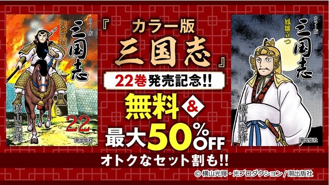 電子書籍販売サイト「ebookjapan」をヤフー株式会社と協力して運営する株式会社イーブックイニシアティブジャパンは、『三国志』(全60巻)1~30巻を24時間読み放題として提供いたします。また、「ebookjapan」では株式会社潮出版社、株式会社光プロダクションの協力のもと『カラー版三国志』を独占配信しています。『三国志』1~30巻24時間読み放題の実施に際し、『カラー版三国志』を期間限定無料&最大50%OFFで提供いたします。