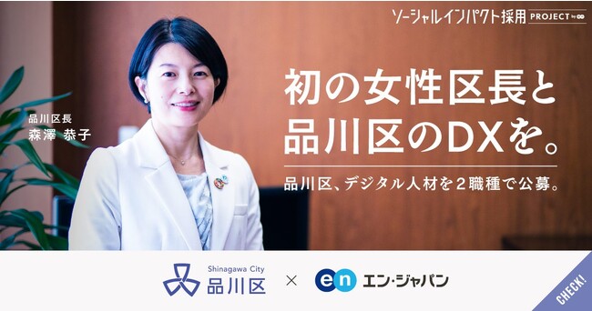 DX推進にともない、品川区では「業務のデジタル化の推進役」として2名、「システム標準化の推進役」として1名の任期付職員を、品川区で初めてエン・ジャパン株式会社の「ソーシャルインパクト採用プロジェクト」により公募します。