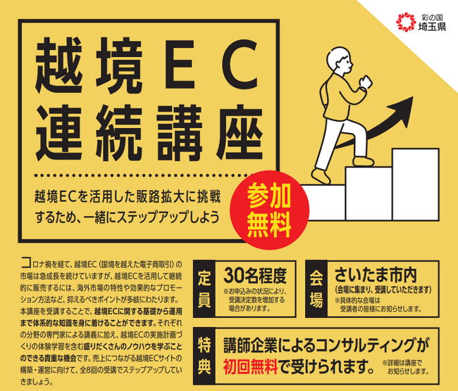 埼玉県は、県内中小企業の海外販路を拡大するため、越境ECを活用した支援に力を入れており、このたび「海外EC連続講座」の受講者の募集を開始します。