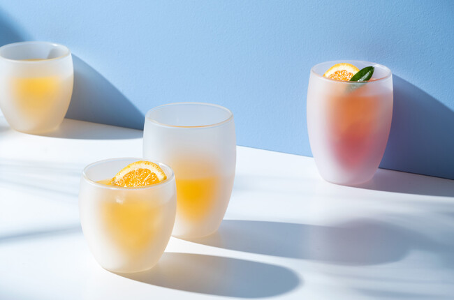 保温、保冷に優れ、結露しにくい二重構造のグラス