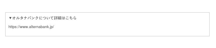 お問い合わせフォーム(お問合せ情報入力):https://www.alternabank.jp/help/inquiry/input