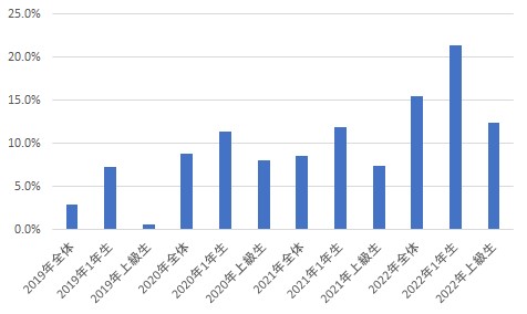 過去の学生アンケートの回答率は20~30%前後であったため、自由記述の回答結果を職員が手作業で集計・分析をおこなうことが可能でしたが、昨年度の卒業時アンケート調査で回答率が20%から70%まで増加したことを受け、今後の在学生アンケートでも回答者数が増えた場合、手作業では集計が難しくなることが予想されたため、将来を見据えて本トライアルに至りました。