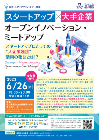 品川区は2023年6月26日に『スタートアップ×大手企業 オープンイノベーション・ミートアップ~スタートアップにとっての”大企業連携” 活用の秘訣とは!?~』を開催します。是非ご参加ください。