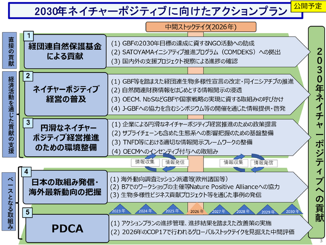 経団連自然保護協議会として初のアクションプラン。2030年ネイチャーポジティブを目指す。