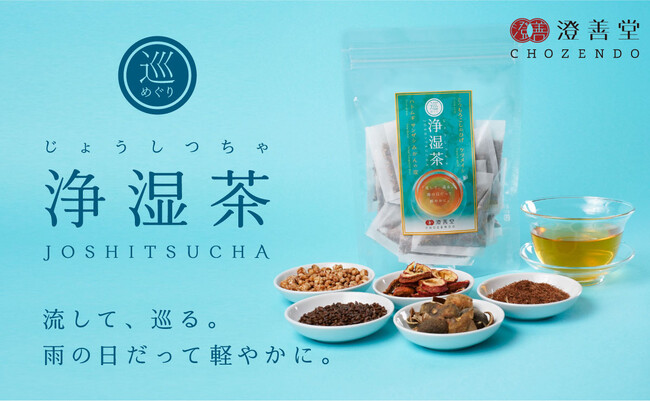 漢方の知識をわかりやすく発信するYoutubeチャンネルの登録者が10万人を突破し、注目度急成長中の「漢方養生指導士 ロン毛メガネ」。自身がプロデュースする漢方養生ライフケアブランド「澄善堂」の商品は、好評につき在庫切れが相次ぐベストセラーに。そんな澄善堂から、ファンが待ちわびた"雨の日のためのお茶”が新登場。<湿>を取り除くことに着目し、ハトムギを中心とした<湿>を流し<気>を巡らせてくれる5つの和漢素材を配合。日本茶を思わせるかぐわしく香ばしいノンカフェインブレンド茶が、雨の日や気圧の低い日の不快な悩みに寄り添います。