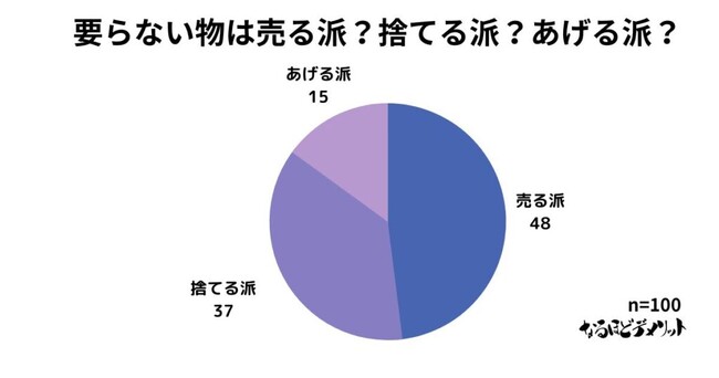 男女100人に聞いた「要らない物は売る派?捨てる派?あげる派?」でもっとも多かったのは「売る派」でした。