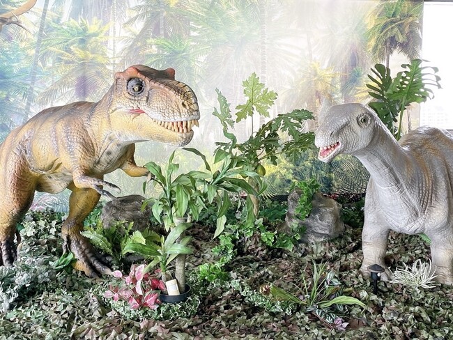 会場内では、全長3~4メートルの恐竜がお出迎え。3体の恐竜たちが動く!ほえる!楽しい演出で会場を盛り上げます。