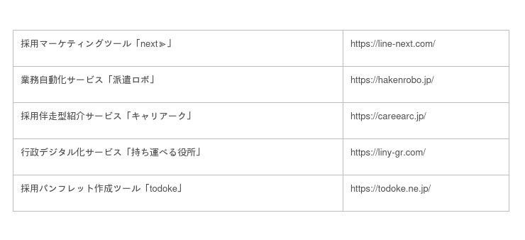 当社は、独自の採用ノウハウを持ち、採用ブランディングや採用コンサルティングを提供しております。また、LINEを活用した採用管理ツール「next≫」の提供、業務効率化を行うサービス「派遣ロボ」、採用パンフレット作成ツール「todoke」等も提供しております。これらのサービスを通じて、市場変化に柔軟に対応できる採用支援を行っております。