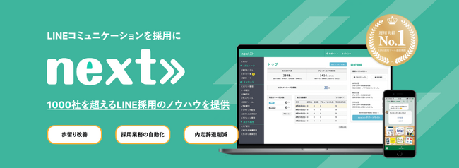 next≫は、日本初のLINEをフル活用した採用マーケティングツールです。採用管理からコミュニケーションの自動化、そして応募者の内発的動機付けを促すマーケティング機能を取り入れた新時代の採用ツールとなっております。