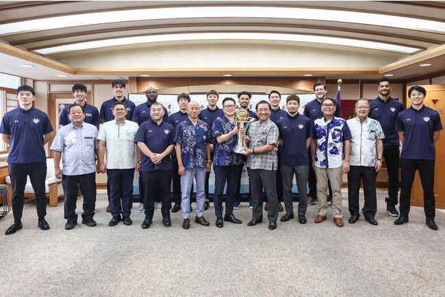 沖縄アリーナを建設し、そこで皆様がプレーをしてくれていることは、沖縄市民の誇りでもありますし、優勝を勝ち取ったということで、県民の誇りになるとも思っています。プレッシャーは大きくなるかもしれませんが、益々のご活躍と良いプレーを見せていただいて、沖縄県民を、そして日本全国を元気にしていただければと思います。