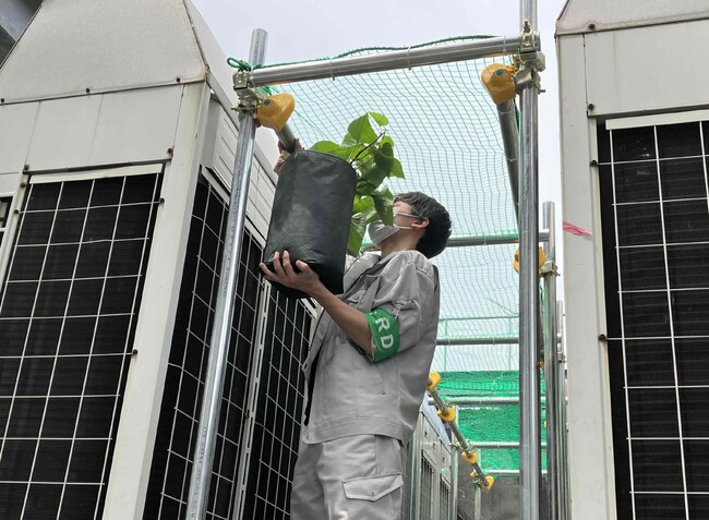 東急不動産株式会社(本社:東京都渋谷区、代表取締役社長:星野 浩明、以下「当社」)は、従前より取り組んでいるオフィスビル屋上での菜園活動「Vegetable Smiles(以下「ベジスマ」)」 に、空調設備の省エネ効果が見込める仕組みである「室外機芋緑化システム※1(以下、芋緑化)」を取り入れ、より多くの施設に展開していきます。