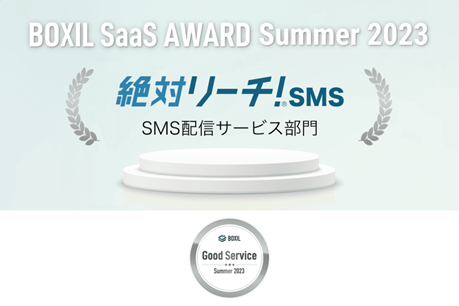 SMS送受信サービス「絶対リーチ!SMS」が「BOXIL SaaS AWARD Summer 2023」 SMS送信サービス部門で「Good Service」を受賞