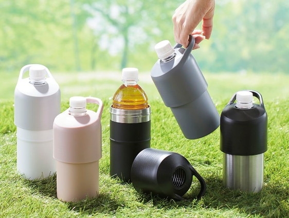 真空断熱二重構造のため外気の影響を受けにくく、買った時の飲み頃の温度を長時間しっかりキープ。ゴム弾性を有するエラストマー素材がペットボトルをしっかり固定するため、キャップが回しやすい仕様です。