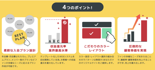 日本テレビグループ企業の日テレWandsが、20年にわたり培ったWebサービス運営のノウハウを活かし提供する。システムの構築や個人情報の管理といった手間を気にせず、「ファンとつながる場」を素早く、リスクを最小限にして実現。コストや時間を抑え、気軽にファンコミュニティを立ち上げることができる。