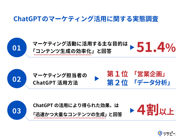 ChatGPTのマーケティング活動に活用する主な目的、「コンテンツ生成の効率化」が51.4%で最多