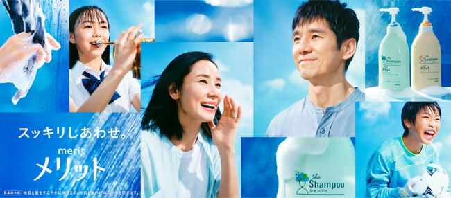 花王のヘアケアブランド「メリット」は、俳優の西島秀俊さんと吉田羊さんが出演する新CMを2023年6月10日(土)より全国で放映いたします。発売から約50年以上の歴史を持つ「メリット」は、地肌の汗や皮脂汚れをすっきり落とすシャンプー・コンディショナーです。今回の新CMでは「家族の夢中の汗を応援!」をテーマに、西島さんと吉田さんが演じるパパママと子どもたちの「感動のすっきりさらさら体験」をさわやかな印象で描いています。