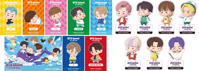 Galaxy Harajuku 6Fの限定フォトスポットで撮影した写真と指定ハッシュタグをつけてSNSに投稿すると、本イベント限定のオリジナルステッカーがもらえるキャンペーンや「BTS Island:インザソム」のゲームをダウンロードすると本イベント限定のオリジナルカードがもらえるキャンペーンを実施します。さらにアンケート回答で本イベント限定のカットアウトステッカーがもらえます。