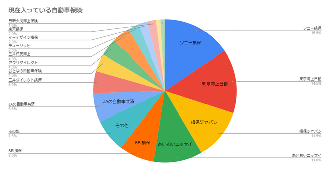 今回のアンケート結果での自動車保険加入率では、ソニー損保が1位(15.5%)、東京海上日動が2位(14.5%)です。ダイレクト型保険会社(ネットで見積もり・加入が可能なタイプ)はソニー損保とSBI損保の2社、代理店型は東京海上日動、損保ジャパン、あいおいニッセイ同和損保の3社が上位5社に入っています。新車購入時にディーラーから任意保険も加入する場合は、主に代理店型が選ばれます。ソニー損保のダイレクト型保険が上位にランクインしているのは、保険料と補償のバランスと、テレビCMなどでの高い認知度が要因と考えられます。