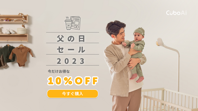 Yun Yun AI Baby Camera Co., Ltd (本社:台湾台北市、代表:TSENG, CHIH HSIN 曾志新(ゼン・ヅーシン)) は、2023年6月14日(水)0:00から6月19日(月)23:59までの6日間にわたり、父の日セールとして『CuboAi スマートベビーモニター』、『CuboAi 赤ちゃんねんね見守りセット』を期間限定10%OFFで販売します。