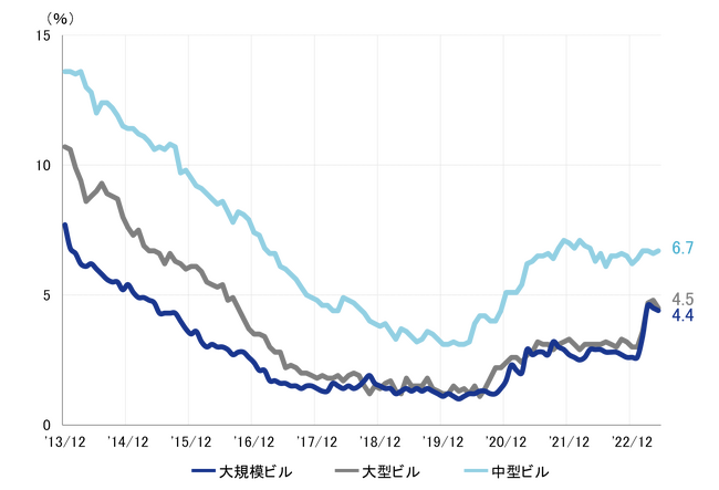 規模別 空室率:「大規模」4%台半ばで推移