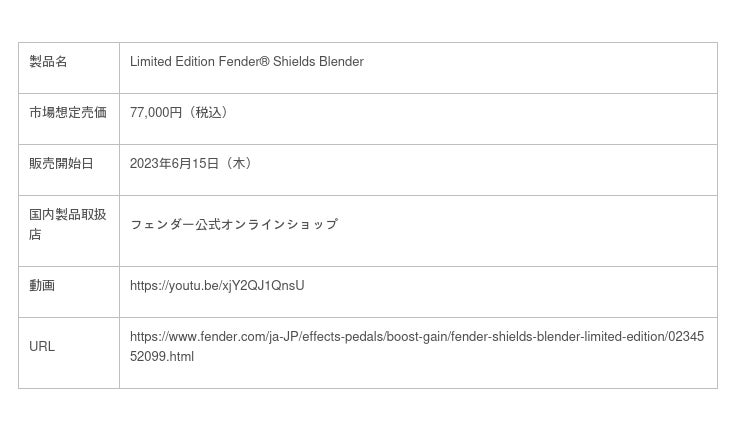 フェンダー ミュージカル インストゥルメンツ コーポレーション(所在地:米国 カリフォルニア、CEO アンディ・ムーニー、以下FMIC)は、My Bloody Valentineフロントマン、ケヴィン・シールズのシグネイチャー エフェクト ペダル『Limited Edition Fender(R) Shields Blender』を発表しました。本製品は、2023年6月15日(木)よりフェンダー公式オンラインショップにて数量限定で販売します。