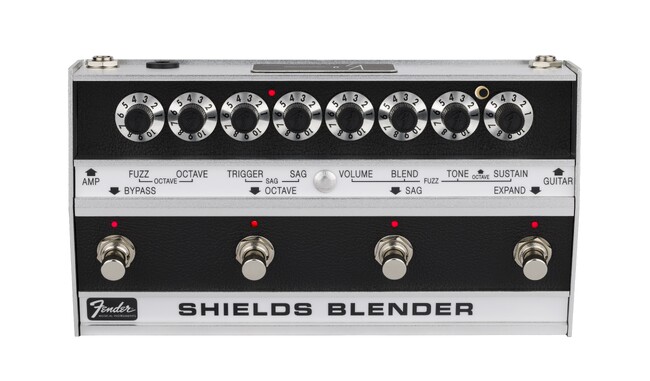 「Limited Edition Fender(R) Shields Blender」は、ケヴィンが長年愛用しているオリジナルのBlender回路を丁寧にハンドトレースしたチャンネル1とパワフルなオクターブブレンダーを搭載したチャンネル2の二つのチャンネルをフィーチャしています。また、SAGフットスイッチで演奏の強弱をすべてコントロールすることが可能になり、これまでになかったスパッタリングやダッキング効果を内蔵しています。『Loveless』や『m b v』といったMy Bloody Valentineを代表するアルバムで聴けるローファイ/ハイファイの極上のサウンドを求めるプレイヤーに最適なペダルです。本製品は、米国で仕上げられており、限定版アートボックス、限定版手書きサイン入りコレクターズブックレットとケヴィンのサイン入りプレートが付属します。