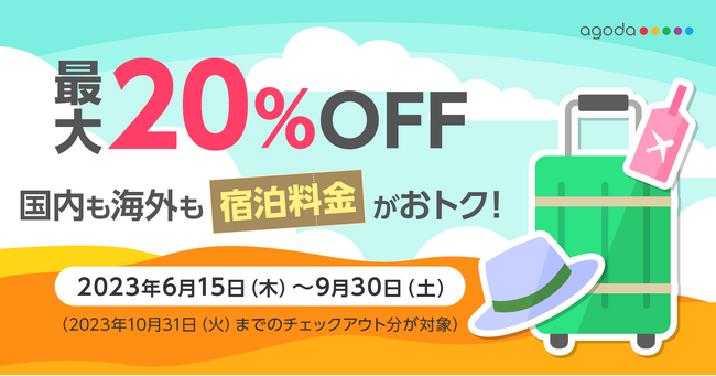 三菱UFJニコスは6月15日から9月30日まで、「三菱UFJカード」の個人会員を対象に、オンライン旅行予約サイト「Agoda(アゴダ)」が取り扱う国内外の宿泊施設のキャンペーン対象施設で、タイでは宿泊料金の20%が、その他の国・地域(国内含む)では同10%が、それぞれ割引となる(いずれも割引上限10,000円)キャンペーンを実施します。