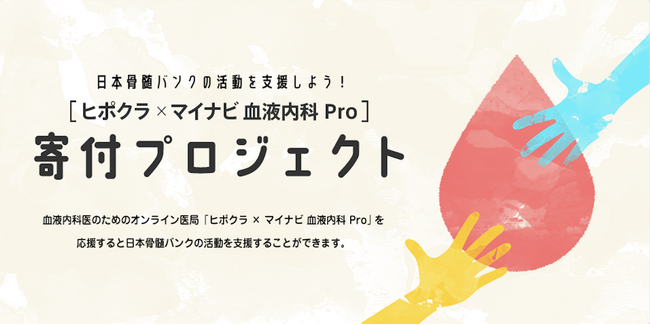 このたび、その活動を一層強化するために、2022年10月の『ヒポクラ × マイナビ 血液内科 Pro』のリニューアルに合わせて、『ヒポクラ × マイナビ 血液内科 Pro』の利用状況等に応じて日本骨髄バンクへ寄付するプロジェクトを実施いたしました。