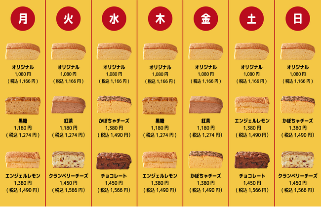 名東では曜日ごとに日替わりで数種のフレーバーのカステラを販売しております。