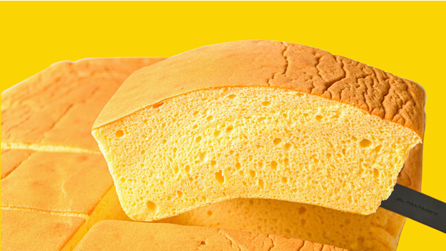 名東の台湾カステラの最大の特徴はシュワシュワ食感にあります。たっぷりのメレンゲを使い、職人がその日の湿度や温度によって混ぜ方などを変えて作ります。生地に大きな気泡が閉じ込められているので口に含むと「シュワッ」と音をたてて泡のように消えていきます。他のどのスイーツでも体験したことのないやわらかさです。