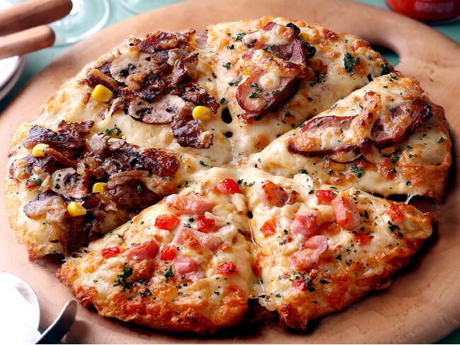 もう少し食べたい定番ピザを頼むのにも、ぴったりな3種のピザを1枚での楽しめるピザーラだけの楽しみ方、ピザーラトリオ!