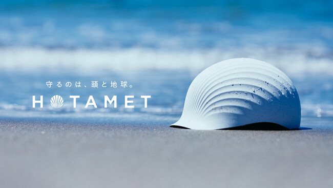 ホタテ漁師は、日常的にヘルメットを着用して、危険から身を守っています。また、日本では地震など災害リスクが高いことから、漁師に限らず、より多くの人たちの安全を守るものとして、ヘルメットは防災グッズの定番です。そこで、ホタテ漁師や日本人が被るヘルメットを、漁師たちが獲ったホタテの殻から作り出すことにしました。その時に注目したのが、ホタテ貝殻の主成分と構造でした。貝殻は「炭酸カルシウム」というセメントなど、強度を高めるために様々な加工に使われる汎用性が高い成分で構成されています。また、過酷な自然界を生き抜く貝殻は、高い強度を発揮する構造物でもあります。この2つの着眼点から生まれたのがHOTAMETです。