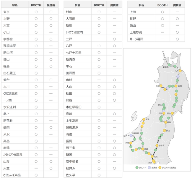 ※1 白石蔵王、米沢、大曲、新庄、上毛高原、安中榛名、上田にはテンキー・簡易版仕様のSTATION BOOTH Lightを設置しています。