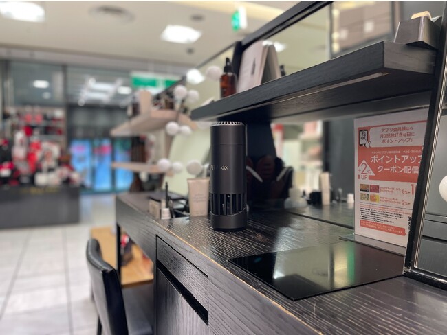より快適にお買い物を楽しんでいただける環境をサポートするため、多くの方が来店される「横浜高島屋」の中でも、ビューティーアドバイザーとお客様の距離が近くなる化粧品売場において、パーソナルスペースの空気を清浄にする「Airdog mini portable(エアドッグミニポータブル)」を設置いたしました。