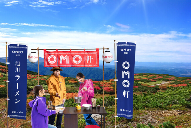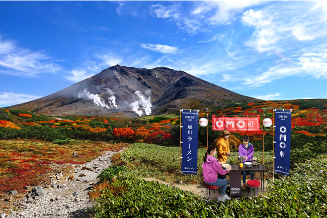 旭川を楽しみ尽くす「街ナカ」ホテル「OMO7旭川 (おも) by 星野リゾート」は、2023年9月1日から30日まで、北海道一標高が高い大雪山旭岳(以下旭岳)で、日本一早い紅葉を眺めながら旭川ラーメンを食べる「旭岳紅葉ラーメンツアー」を開催します。本ツアーは旭川の街を愛するご近所ガイドOMOレンジャー*(以下OMOレンジャー)が、旭岳で紅葉が綺麗に見えるスポットへご案内。そこで、旭川を代表するグルメである「旭川ラーメン」を食べることができるツアーです。3度目の開催となる今年は、新たに山の上にラーメン屋台を模した特別席が登場。よりラーメン屋に近い雰囲気の中で、紅葉と旭川ラーメンを楽しめるように進化しました。