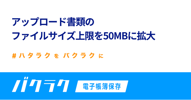 バクラク電子帳簿保存、アップロード書類のファイルサイズ上限を50MBに拡大