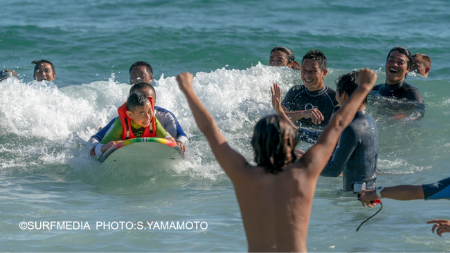 サーフィン体験会では、大会中のプロのサーファーの選手たちと、海を愛する関係者がたくさん集まり子どもたちのサーフィン体験を実現しました。みんなで力を合わせてできないをできた!に変えた出来事でした。