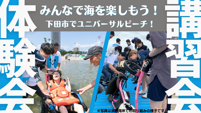 障がいがある人もない人もみんなが一緒に楽しめるビーチづくりを目指すNPO法人須磨ユニバーサルビーチプロジェクトは、静岡県下田市にある外浦海水浴場にて海のバリアフリー化とユニバーサルビーチ実現に向けて、ビーチマットの設置と水陸両用車イスを用いてのユニバーサルビーチ体験会を7月22日(土)10:00~15:00、ユニバーサルビーチ講習会を8月20日(日)9:00~12:00に実施いたします。