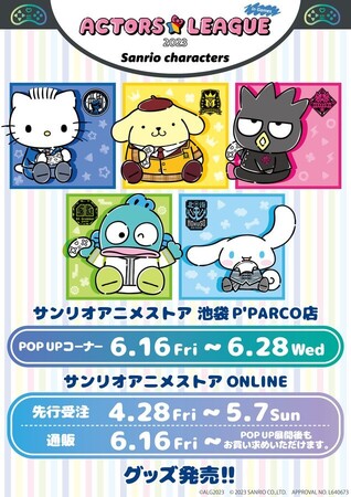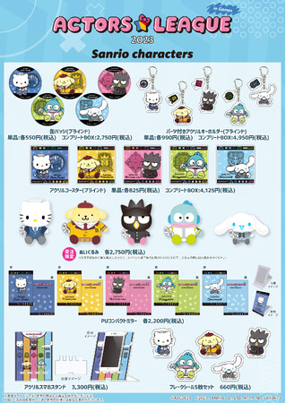 株式会社A3は、「ACTORS☆LEAGUE in Games 2023×サンリオキャラクターズ」のPOP UPコーナー開催および、新作コラボグッズの販売を実施いたします。