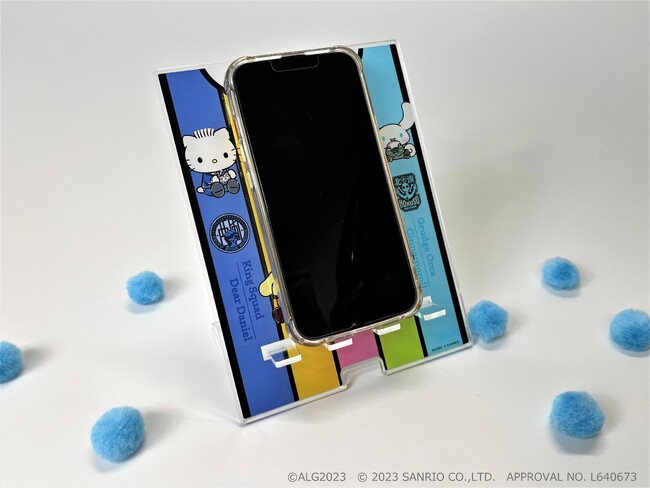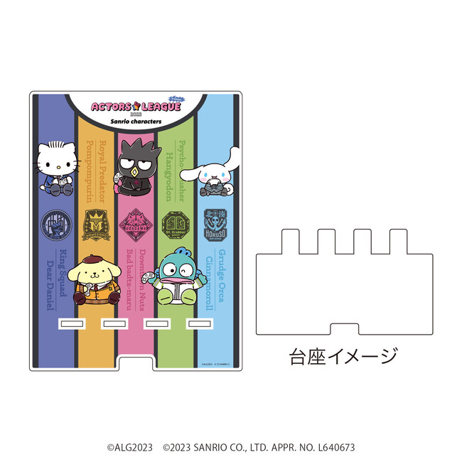 付属の台座を付けると、スマホを立てかけられるアクリル製のスタンド。『ACTORS☆LEAGUE in Games 2023』の5校が大集合したデザインで、カラフルな色合いと愛らしいサンリオキャラクターズたちがファンの目と心を楽しませてくれます。
