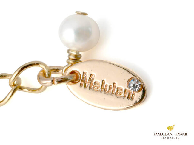 アジャスターの先端には、「神に護られる」という意味のハワイ語「Malulani」と刻印のオリジナルチャームを、一粒の淡水パールとともに装着。