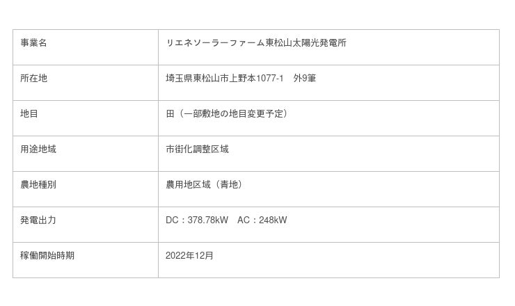 <参考>リエネソーラーファーム東松山太陽光発電所について