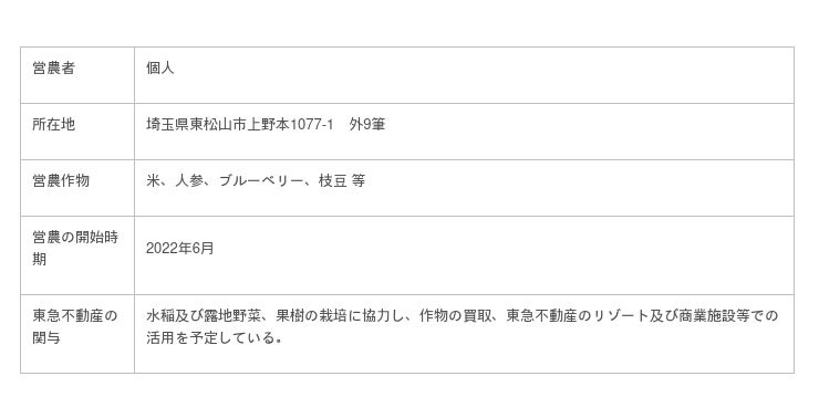 東急不動産は全国でエネルギー及び農業問題の課題解決に向けてソーラーシェアリング(営農型太陽光発電)事業に取り組んでいます。2022年12月に稼働開始した「リエネソーラーファーム東松山太陽光発電所」では、自社を含む12社のパートナー企業とともに、最適な発電確保に向けた検証や、作物育成データ収集・分析による営農実証などを実施しています。また、発電所近隣には視察や参加型実証が可能な「TENOHA東松山」も開業しています。