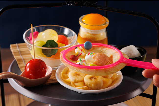 夏祭りの定番、金魚すくいやスーパーボール、りんご飴も!?華やかスイーツとセイボリーで楽しむ大阪もんいっぱいのアフタヌーンティー