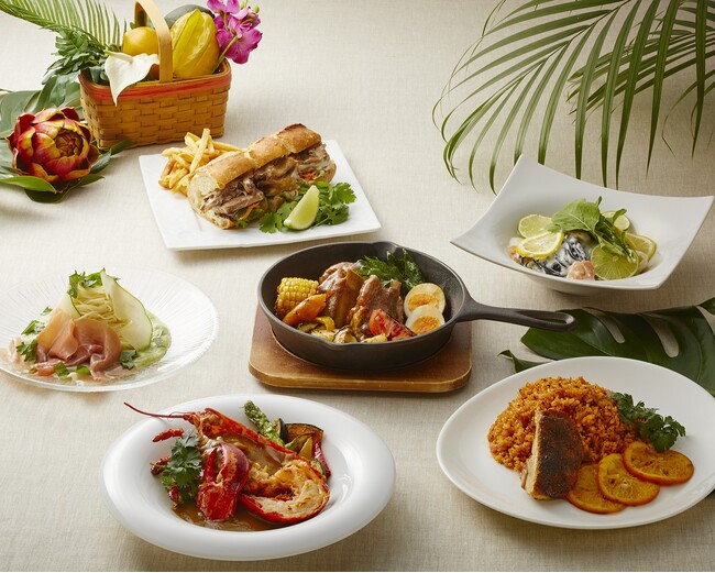 また、パンチのある味わいで多彩なスパイスが食欲をそそる、ジャンバラヤ オレンジとケイジャンチキン添えや、濃厚なオマール海老のソースとスパイスの効いたカレーをココナツでマイルドに仕上げた、オマール海老のカレー仕立て ココナツ風味など、多様なスパイスでアレンジしたボリュームたっぷりのメニューもラインナップ。さらに、パクチーをお好みで調整しながらお楽しみいただける、エスニック感あふれるチキンとポークパテのバインミーサンドウィッチや、パイナップルでマリネしたポークスペアリブなど、夏の気分を盛り上げる品々をご用意しております。